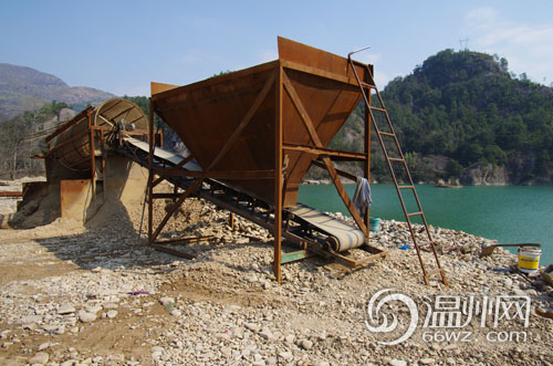 水政监察大队大队长吕胜建介绍,这个位于渠口冷水湾的石料加工场是有工商登记的,是2012年前后疏浚楠溪江支流的时候设立的砂石堆场,当时也经过了有关部门的审批。而今天上午记者看到的大量砂石就是楠溪江疏浚的时候,从石柱、沙头段运来的,该加工场本身并没有从楠溪江流域采砂取石,这从堆场上的机器也大致能够分辨。