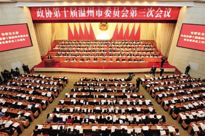 昨天上午,政协第十届温州市委员会第三次会议在市人民大会堂开幕。陈翔杨冰杰摄
