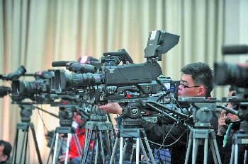 发布会吸引来各类媒体记者参加,并采取电视、网络媒体同步现场直播的方式进行。记者 左庆 摄