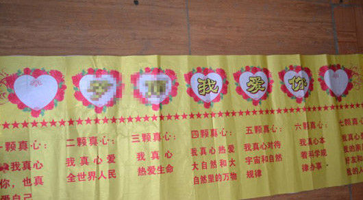 2月17日下午,通过段郢派出所,人民网安徽频道记者看到了老郭的横幅内容——“我真心爱你,也真心爱自己”“我真心热爱大自然,我真心爱全世界人民。”