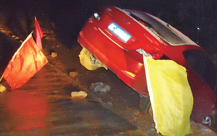 提起当晚的事发经过,张女士还后怕不已。她说,2月13日下午她和亲友到泽雅镇垟田村一山顶寺庙祈福。晚上6时30分许,他们开始驾车从山顶返回市区,由于对山区道路路况不熟,再加上天黑、下雪,她驾车行经垟田村一下坡山路时,车辆突然打滑失控,往道路旁边冲去。她赶紧踩刹车,等她将车停下来后,发现车子已冲出路面,挂在悬崖上,车头前方只有几棵稀疏的树木,往后就是几十米深的悬崖。