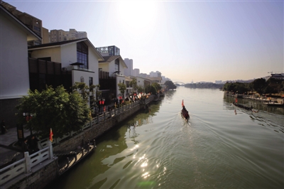 “印象南塘”之南塘风貌街开街,龙舟缓缓划过南塘街。刘伟摄