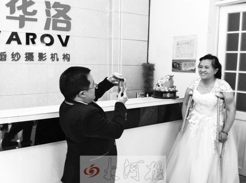 前两天,晶晶第一时间告诉记者要结婚的消息。随后,在一次聊天中,安阳市施华洛高端婚纱摄影机构的老板施华洛得知了此事,了解到晶晶的事情后很感动,当场决定要免费为晶晶拍婚纱照。