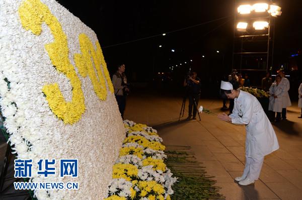 4日晚,昆明市在市级行政中心广场举行“3·01”严重暴力恐怖事件遇难者祭奠活动。
