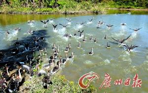 湾咀头湿地公园内群鸟在嬉戏(资料图片)。记者顾展旭摄