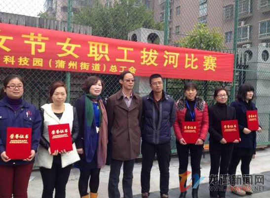 龙湾新闻网讯 3月11日上午,高新区科技园(蒲州街道)在高新大楼旁篮球场举行了2014年“庆三八”企业女职工拔河比赛。