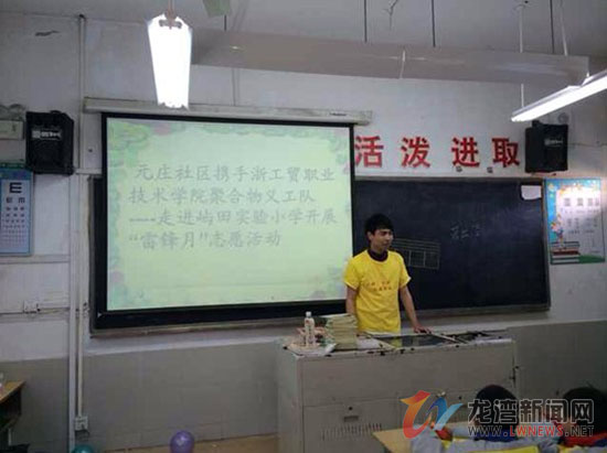 当天上午,浙江工贸学院材料系聚合物义工队代表,身着黄色义工队马甲走进屿田实验小学,为学生们带来了一堂别开生面的课。义工队同学首先为在座小学生介绍了雷锋的生平事迹,并告知大家我们要在生活中以雷锋为榜样,从我做起从小事做起,将雷锋精神发扬下去。期间,义工队同学采用提问和做游戏的方式与小学生们进行互动。最后通过学唱《学习雷锋好榜样》这首经典的歌曲,让小学生们体会到到学习雷锋的重要性和责任意识。