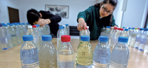昨日,“5·1”小长假结束了,温州大学城市学院的大学生们如期返回课堂,并带回了全省90个县(市、区)的母亲河水样。昨日下午,这90瓶水样被送往温州大学专业实验室内进行检测。