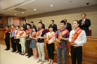 区领导周赞、徐国信、阮云富、卢斌、王人杰等出席会议。图为区“十大杰出青年”颁奖现场。