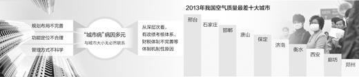 ——据环保部监测,2013年我国空气质量最差的十大城市是:邢台、石家庄、邯郸、唐山、保定、济南、衡水、西安、廊坊和郑州。北上广深等特大城市均不在其列……