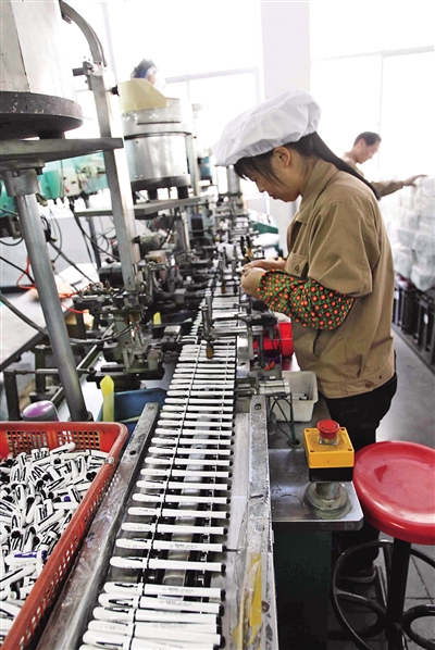 都说制笔业是传统的劳动密集型产业,为何爱好笔业的工人会如此少?难道是招工难?一旁的爱好笔业公司副总经理南宪德笑笑说,这几年通过对厂房改造的“加减”法后,员工从2009年的6500人锐减到现在的4300人,产值却提高了3个多亿,公司接单能力明显比以前提高。这一切的变化,爱好笔业是在用地增益上做起了“加减”文章。