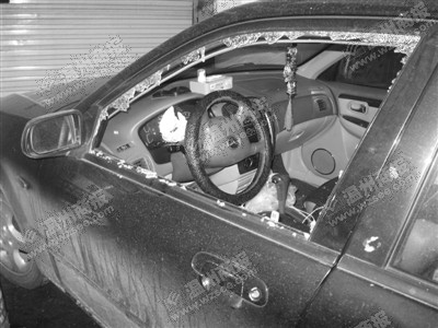 张勇再次来到陈女士所在的公司门口,发现陈女士轿车的驾驶室车窗玻璃已出现个大窟窿。砸车的王敦玺略带委屈地说:“我就是想通过砸车逼她出来。”