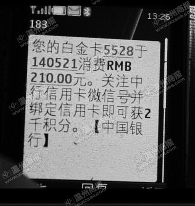 陈女士转发的银行信息显示的确只被扣款210元。警方供图