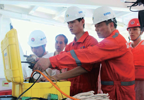 刘海勇说:“我们救助队是24小时待命,军事化管理,所以一接到命令就马上做准备。”他们携带了包括声呐扫测仪、信标探测仪(主要探测黑匣子)、潜水设备等专业救助搜寻设备。“我们的任务主要是在指定海域搜寻疑似飞机残骸的漂浮物。”