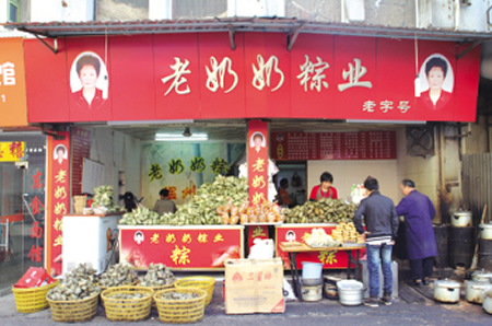 老奶奶粽业是县前头开张最早的粽子专营店。“老奶奶”施丽芬,年纪已60有余。据店主介绍,这包粽子的手艺,是当年从婆婆手里学的。一包就包了四十多年。现在店铺交由女儿打理,但逢端午这样的销售高峰,老奶奶就会亲自出马。从去年起,老店还推出真空包装,这样市民送礼自食都不用担心保鲜问题了。目前,店铺接受个人与团体预订。
