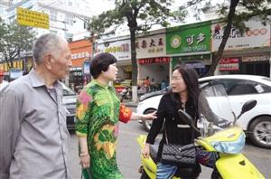 “红袖章”在街上耐心劝导不文明行为。苍文摄