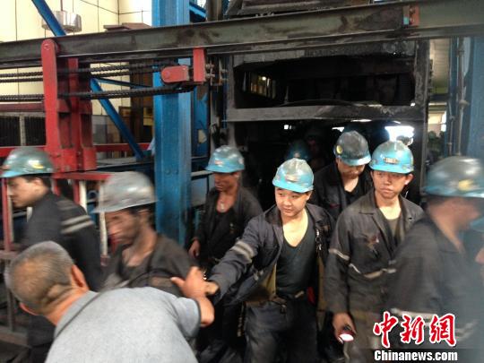被困的5名矿工被升降平台拉上地面。 张鹏翔 摄