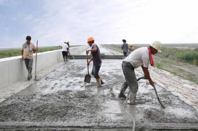 日前,按照20年一遇标准建造的海滨围垦工程标准堤塘即将完工。记者在现场看到,在灵昆大桥的滩涂附近,五米宽的混凝土结构堤顶路面向远方延伸,与1994年建造的永强标准堤塘连成一体,筑成一道坚固的“生命线”。