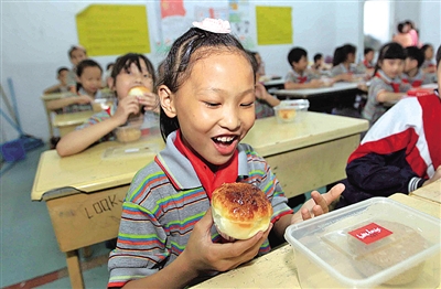 美味的爱心餐点让孩子们惊喜不已。陈翔摄