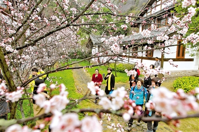 连日来,在楠溪江耕读小院,游人在花间徜徉尽享烂漫春色。