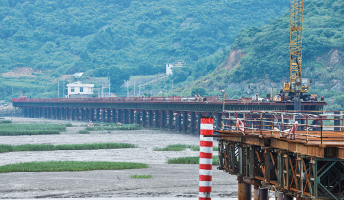 崇家岙万吨码头位于苍南县金乡镇,集港口物流业和仓储、大型石油储备、煤炭中转基地及集装箱码头为一体,未来将承担着鳌江流域港口转移的功能,成为苍南乃至平阳、泰顺的对外物流口岸。而直接与该码头相连的,便是北岭山隧道和巴曹大桥。桥隧工程全部建设完工后,从码头经隧道与大桥前往龙港新城,全程甚至不用10分钟,极其方便快捷。