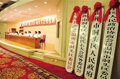 市委副书记、代市长徐立毅主持大会。市四套班子领导陈笑华、余梅生、陈作荣、仇杨均、姚高员、任玉明、陈建明等参加大会。市四套班子主要领导分别为洞头区四套班子授牌。