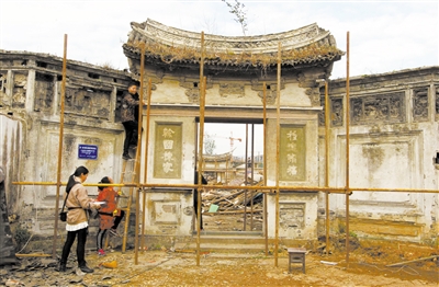 昨天下午,在龙湾区蒲州街道江前村城中村改造现场,来自龙湾区工务局、教育局、文广新局、蒲州街道等部门和古建筑文物考古专家,对该村将近百年的老门台进行迁移论证和调查。