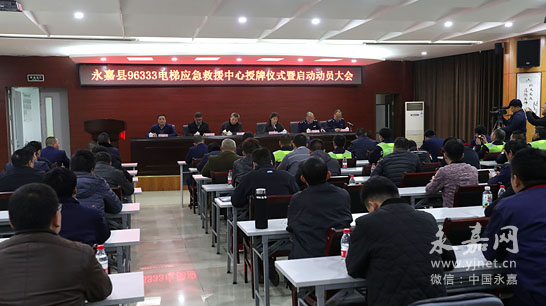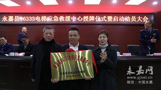 12月14日下午,永嘉县96333电梯应急救援中心授牌暨启动动员大会在瓯北举行,这标志永嘉县96333电梯应急救援中心正式对外运行。一旦有市民在电梯中被困,可拨打电话96333求救。副县长周旭丹出席会议。