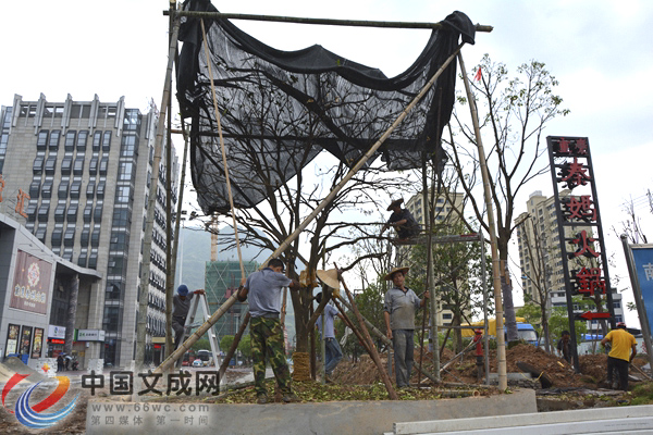 另外,为了能够准时完成工程项目,在室外的绿化方面,施工单位也是想了很多的办法。卓海林说:“因为现在天气比较炎热不适合种苗木,但是为了不影响总体的进度,我们决定先将苗木种起来,然后再在用遮阳的布将苗木给保护起来。”