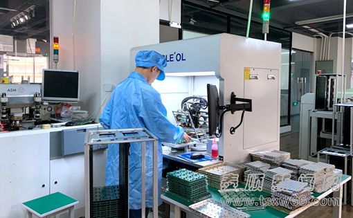 温州市泰芯电子有限公司位于罗阳镇金湖广场,数字化生产车间内,工人们正在进行测胎压线路板的生产工作,晶片贴装、性能测试、封装烘干等生产线正在全力运行。