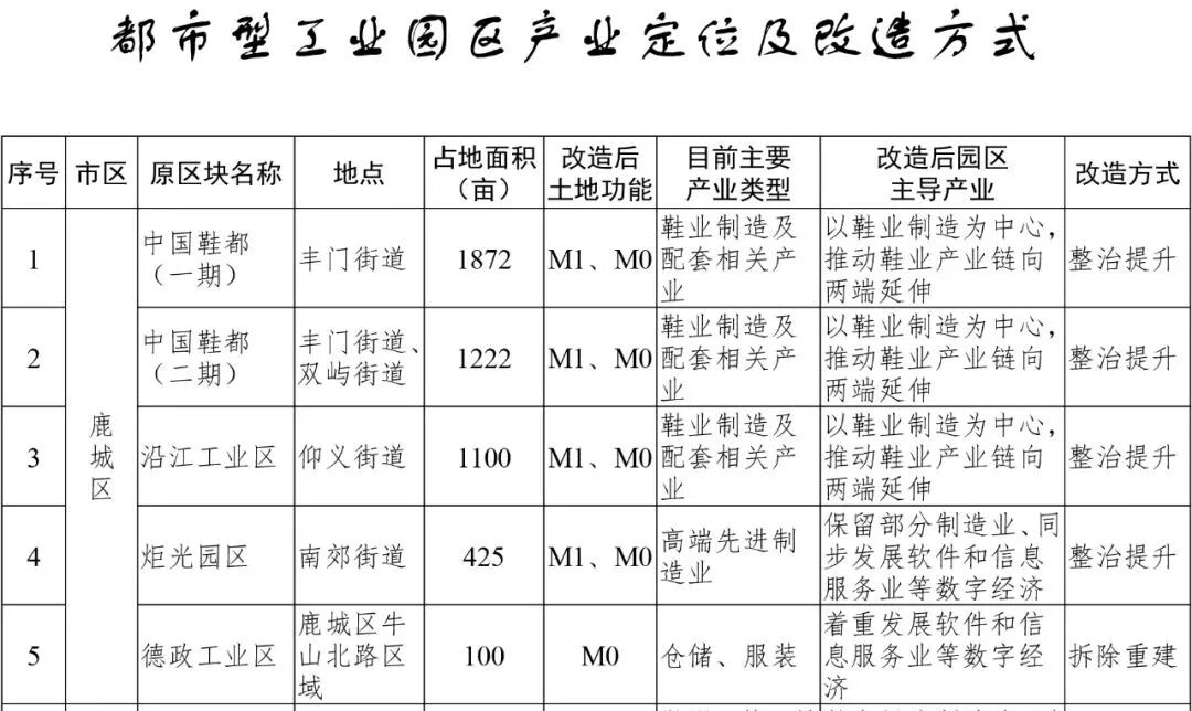 同时按照《意见》拟定计划我市中心城区计划拆除重建4个工业区,包括鹿城区德政工业区(产业从现在的仓储、服装调整为着重发展软件和信息服务业等数字经济);对其他工业园区则进行整治提升。